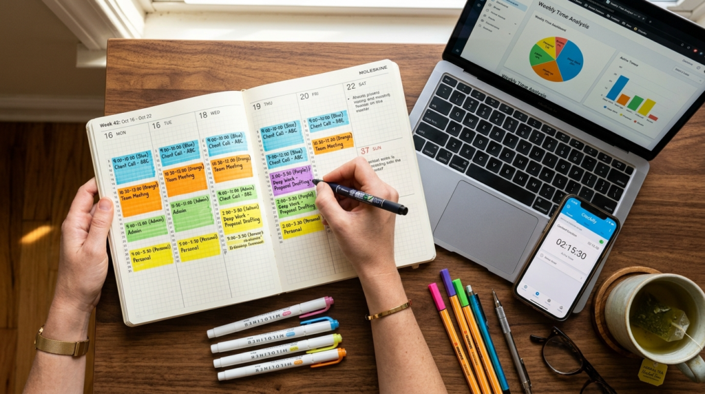 可視化の方法として、「タイムログ(時間記録)」の習慣化をお勧めします。例えば、一週間単位で、何にどれだけの時間を費やしたかを詳細に記録してみましょう。「メールチェックに30分」「会議準備に1時間」「移動中にSNSを閲覧」といったように、全ての行動を記録することが目的です。このログを突き合わせることで、私たちは「時間泥棒」となっている行動や、実際には重要度が低いタスクに費やされている時間(例えば、思考停止のまま流れるウェブ閲覧など)が明確に見えてきます。